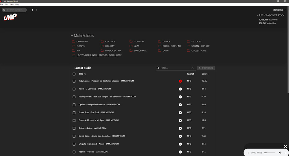 We provide new music, remixes, edits and more every month via your laptop or computer at any moment. That means you can connect anytime! From your studio, station, home etc. Our Online record pool is updated daily, with quality promotional singles & remixes. We guarantee to have the largest musical Latin library available. Unlimited amount of music and connections.