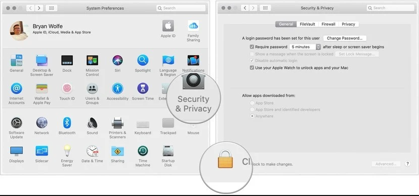 04.Enter your password to unlock Security and Privacy.