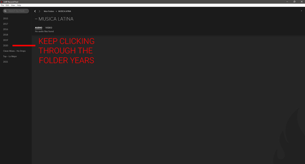 We have the music organized by Folder Name/Genre > Year > Month > Week/Date – you must click through the folders until you reach the week / date.